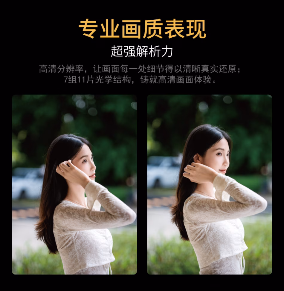 高清分辨率,让画面每一处细节得以清晰真实还原;7组11片光学结构,铸就高清画面体验