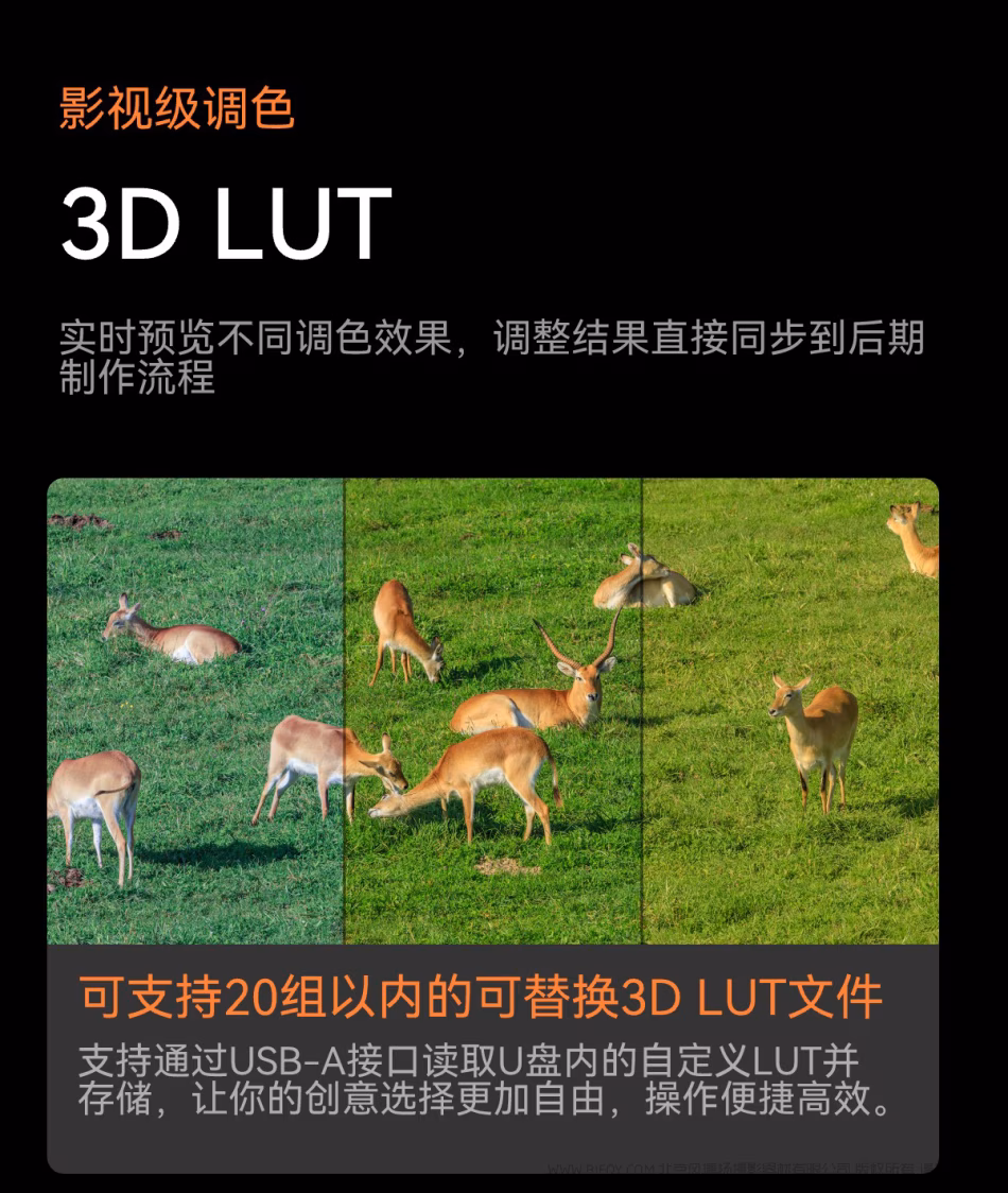 | HDMI OUT | 1920x1080p@60Hz 3D LUT 输出 UI输出 图像亮度、色调、对比度调整输出 竖拍拉大长腿输出 |