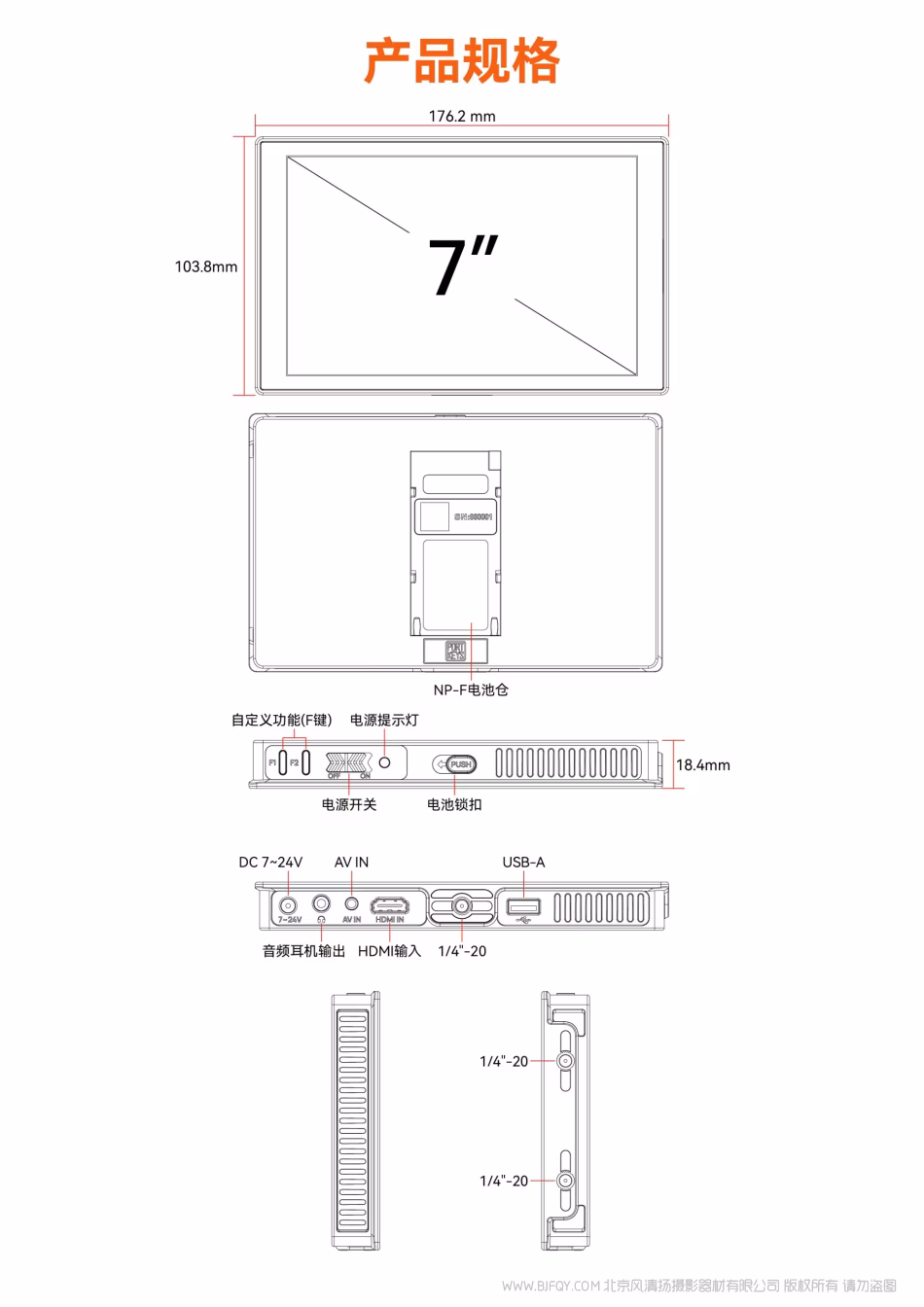 | 支持电池型号 | SONY NP-F970/F960/F750/F550 |