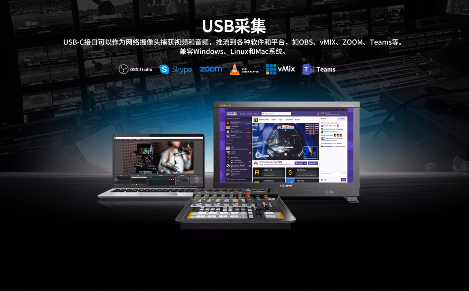 * 2×HDMI PGM输出,1×HDMI多画面输出,1×USB type-C