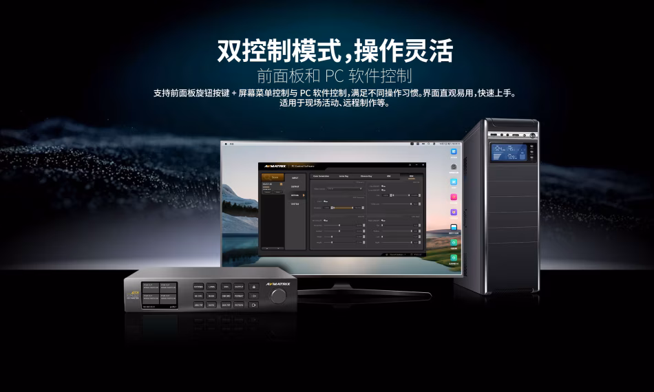 * DSK & PIP 叠加 * 多平台操控:前面板 + PC 软件,随心控制 * 外部音频 & Tally输入:满足多机位协作需求