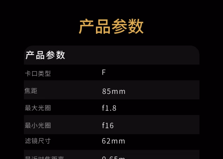 | 焦距 | 85mm |