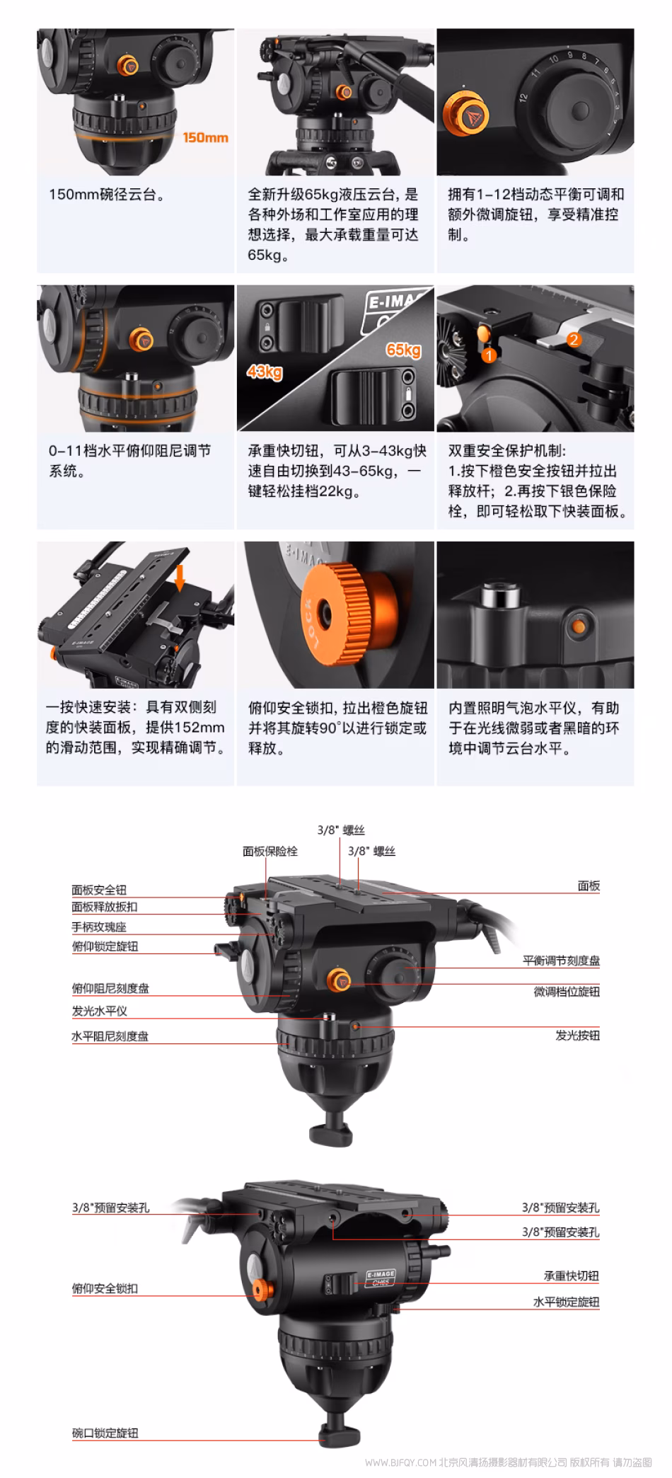 意美捷 E-image GH65 with 150mm Bowl Size 150毫米碗口 65kg承重云台