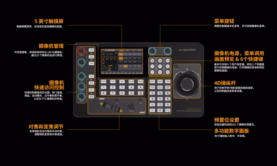 迈拓斯 AVMATRIX PKC4000丨5寸触摸屏PTZ摄像机控制键盘