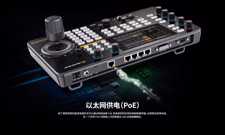 *6 个用户可指定按键,用于快速访问功能 *快速控制曝光、光圈、聚焦、摇镜头、俯仰等功能 *支持 PoE 和 12V 直流电源