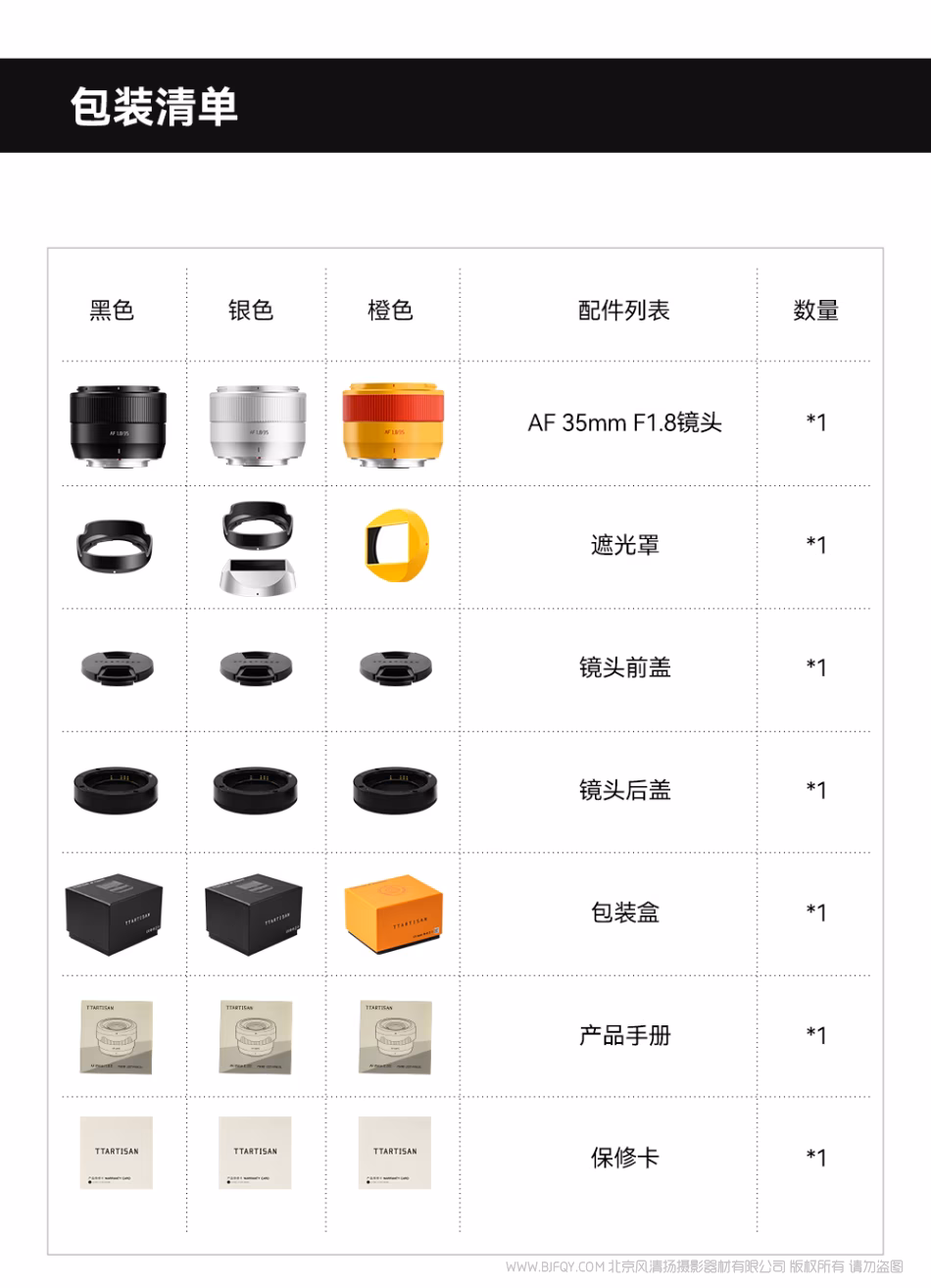 | AF3518II-E-O | 6973251732935 | 798元 | 自动对焦APC-C AF35mm F1.8 索尼E 二代 限量版 |