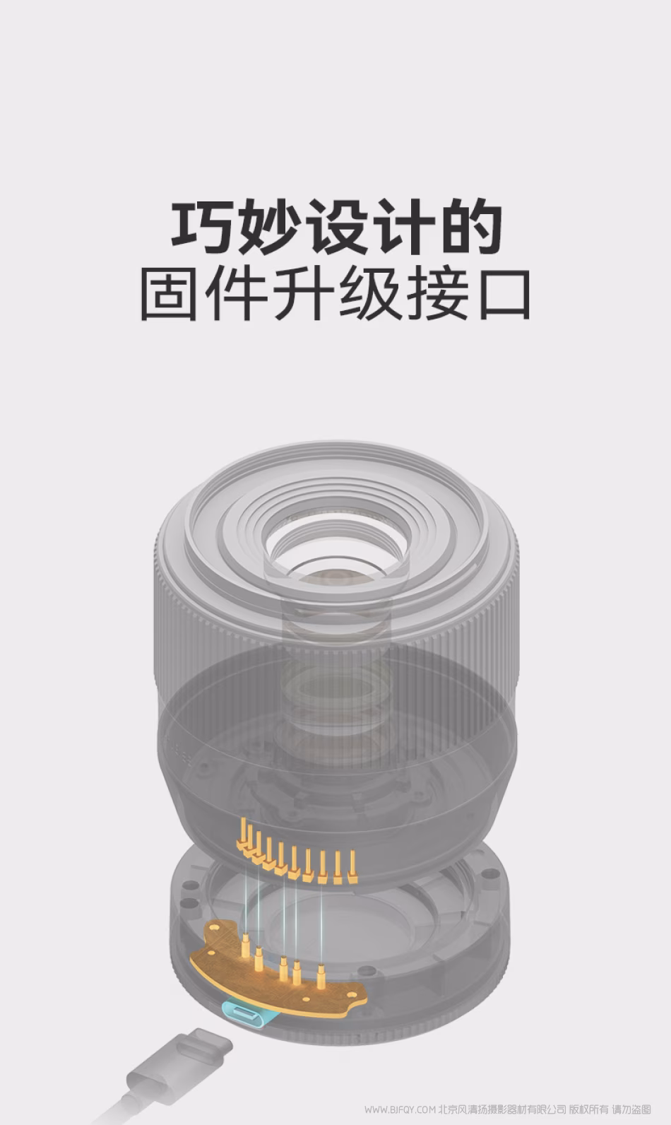 镜头可通过type-c接口进行固件升级,以稳定/提升性能。市面上常见的是把升级接口设计在镜头上,而铭匠56/1.8别出心裁,把接口设计在后盖上,进一步提升镜头一体性、美观性。