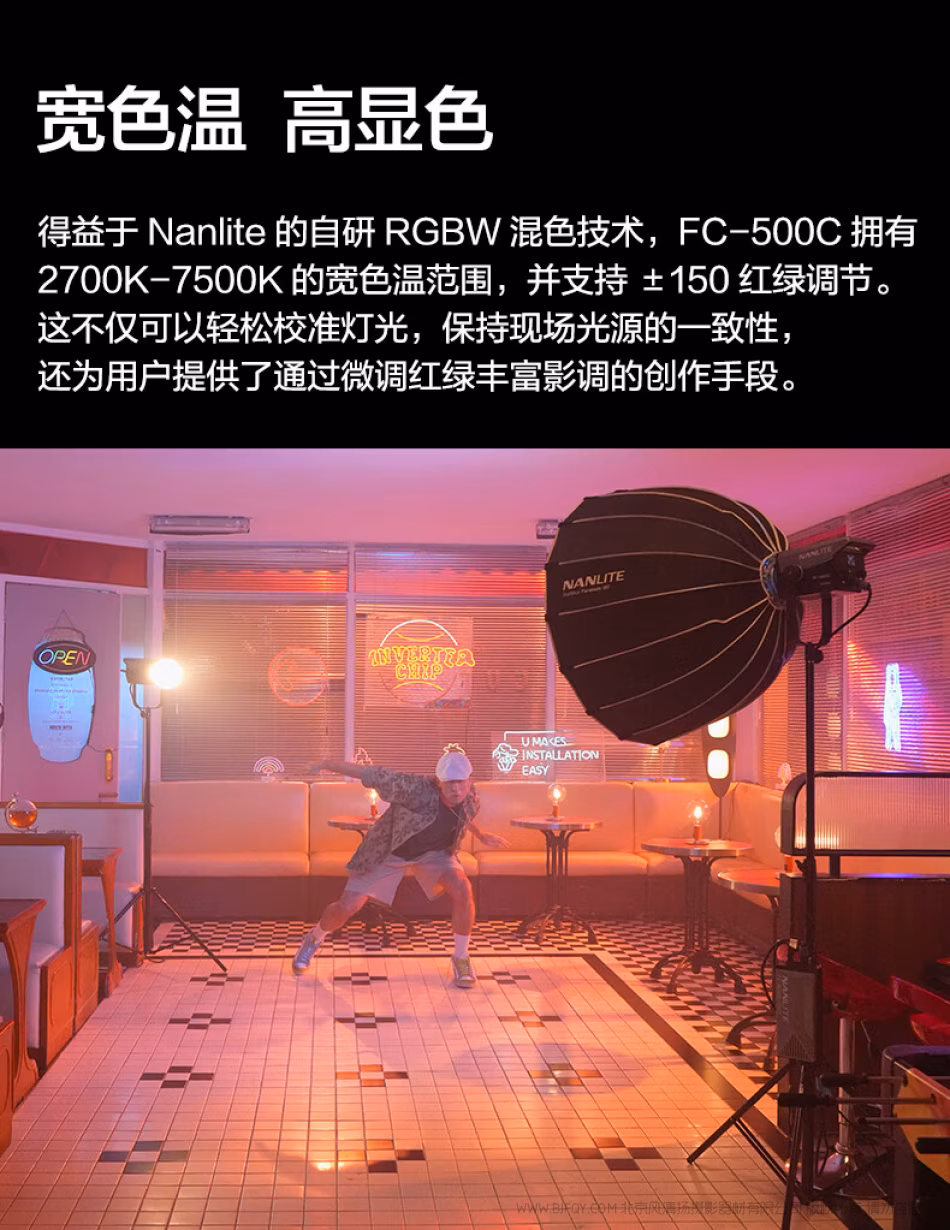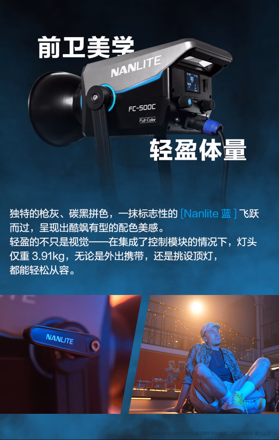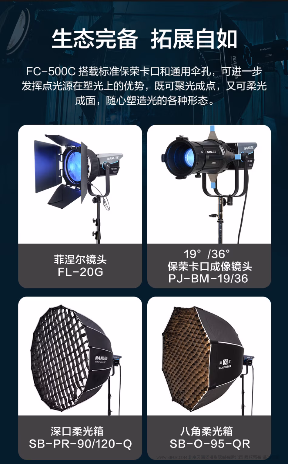 南光 NanLite FC-500C 彩色点光源 520W 影视灯 带45° 反光罩 / 5600K COB光学