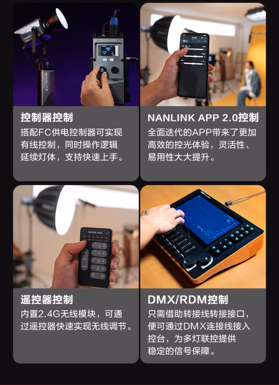 控制方式 | 灯体操控,遥控器,NANLINK APP,DMX/RDM |