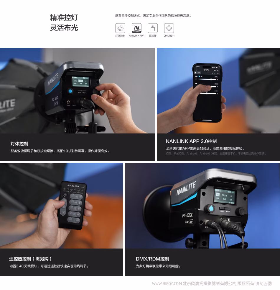 控制方式 | 灯体操控、遥控器、NANLINK APP、DMX/RDM |