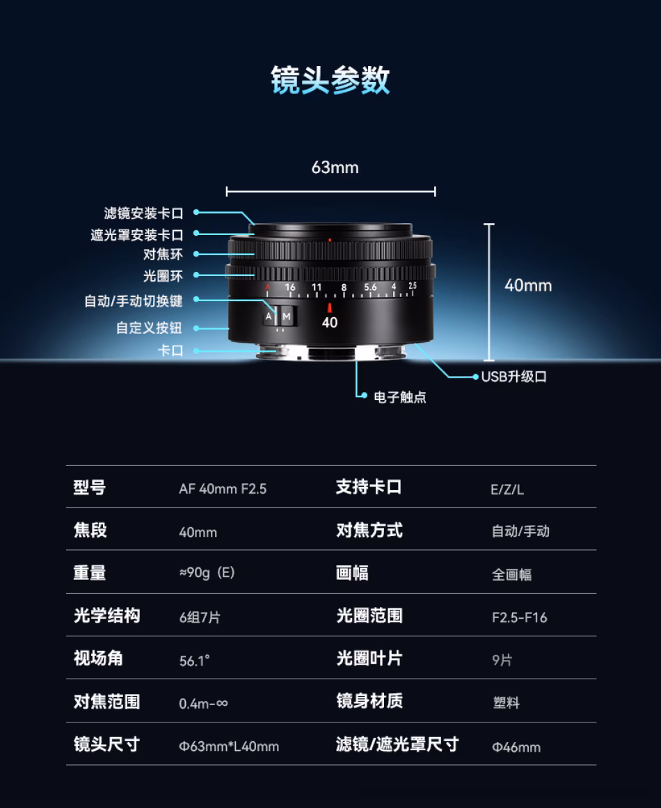七工匠 7artisans AF40mm F2.5 自动对焦定焦镜头 全画幅 7-AF4025