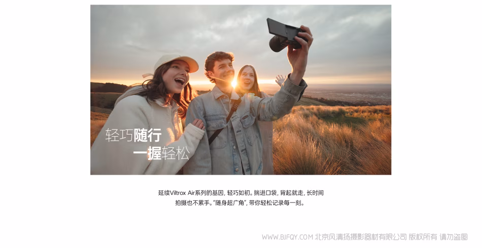 延续ViltroxAir系列的基因,轻巧如初。揣进口袋,背起就走,长时间拍摄也不累手。“随身超广角”,带你轻松记录每一刻。