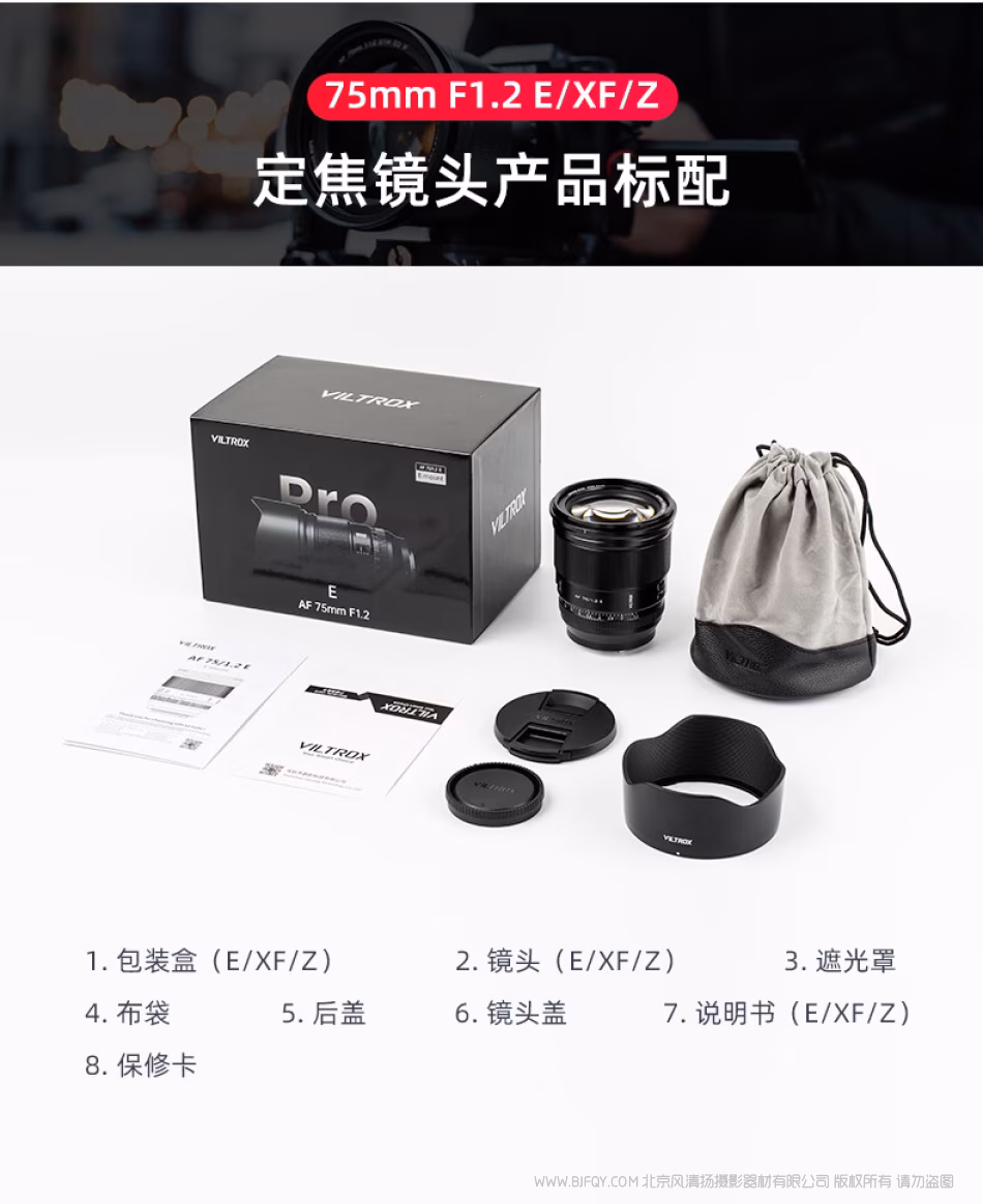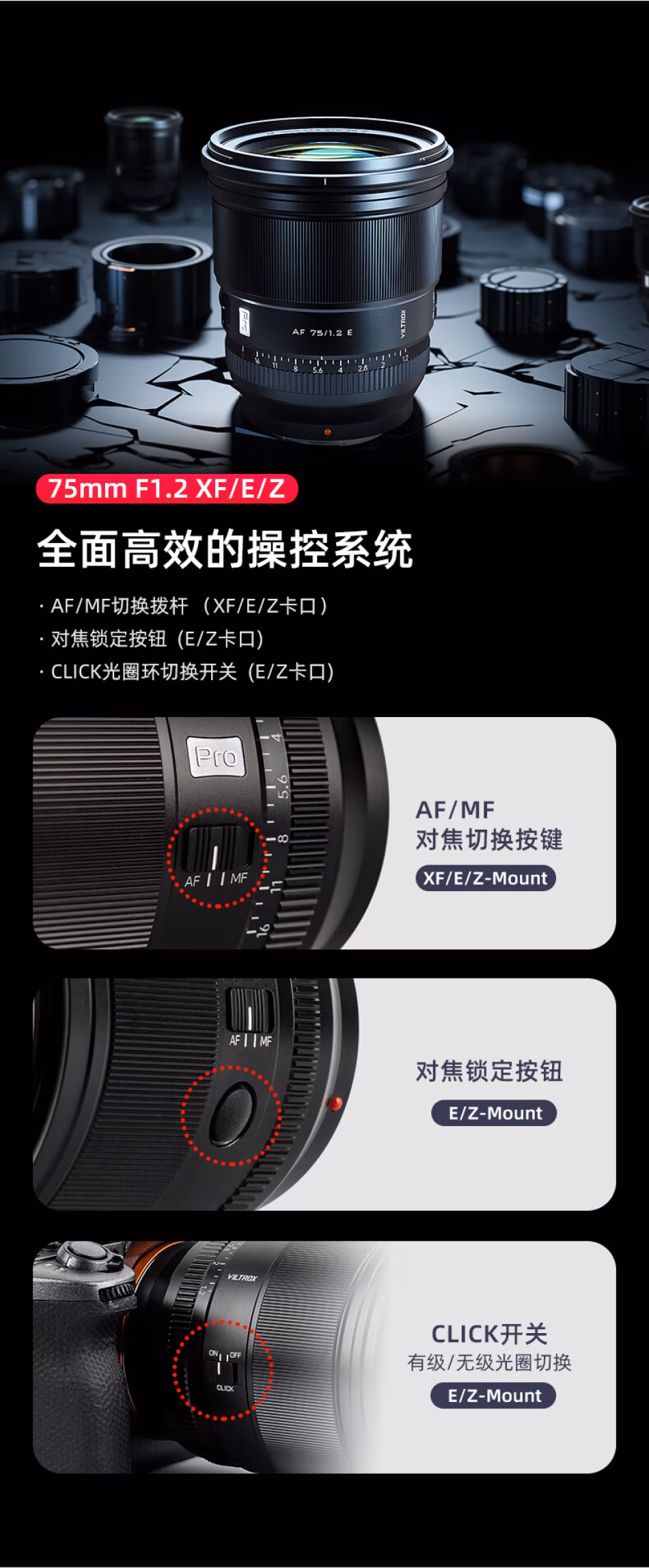 唯卓仕 Viltrox AF 75mm F1.2 Pro E/Z/X APSC画幅 大光圈定焦镜头 VL-AF7512P