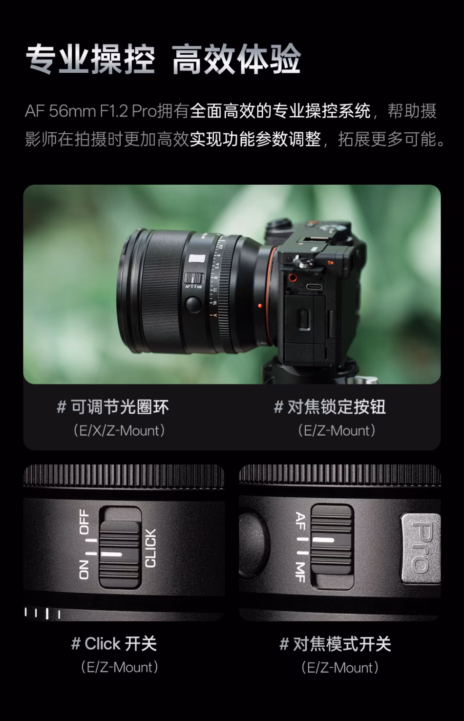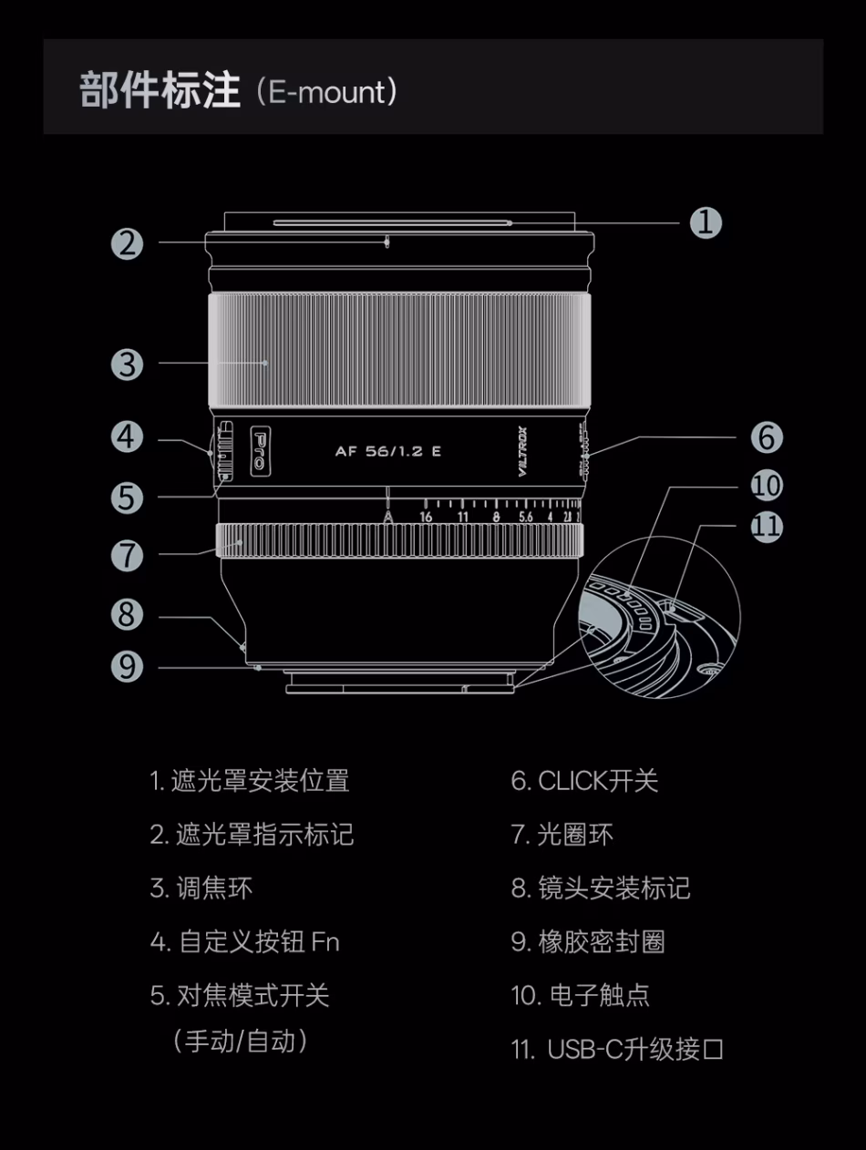 唯卓仕 Viltrox AF 56mm F1.2 Pro E/Z/X APSC画幅 大光圈定焦镜头 VCM马达 UA超级非球面镜片 VL-AF5612P
