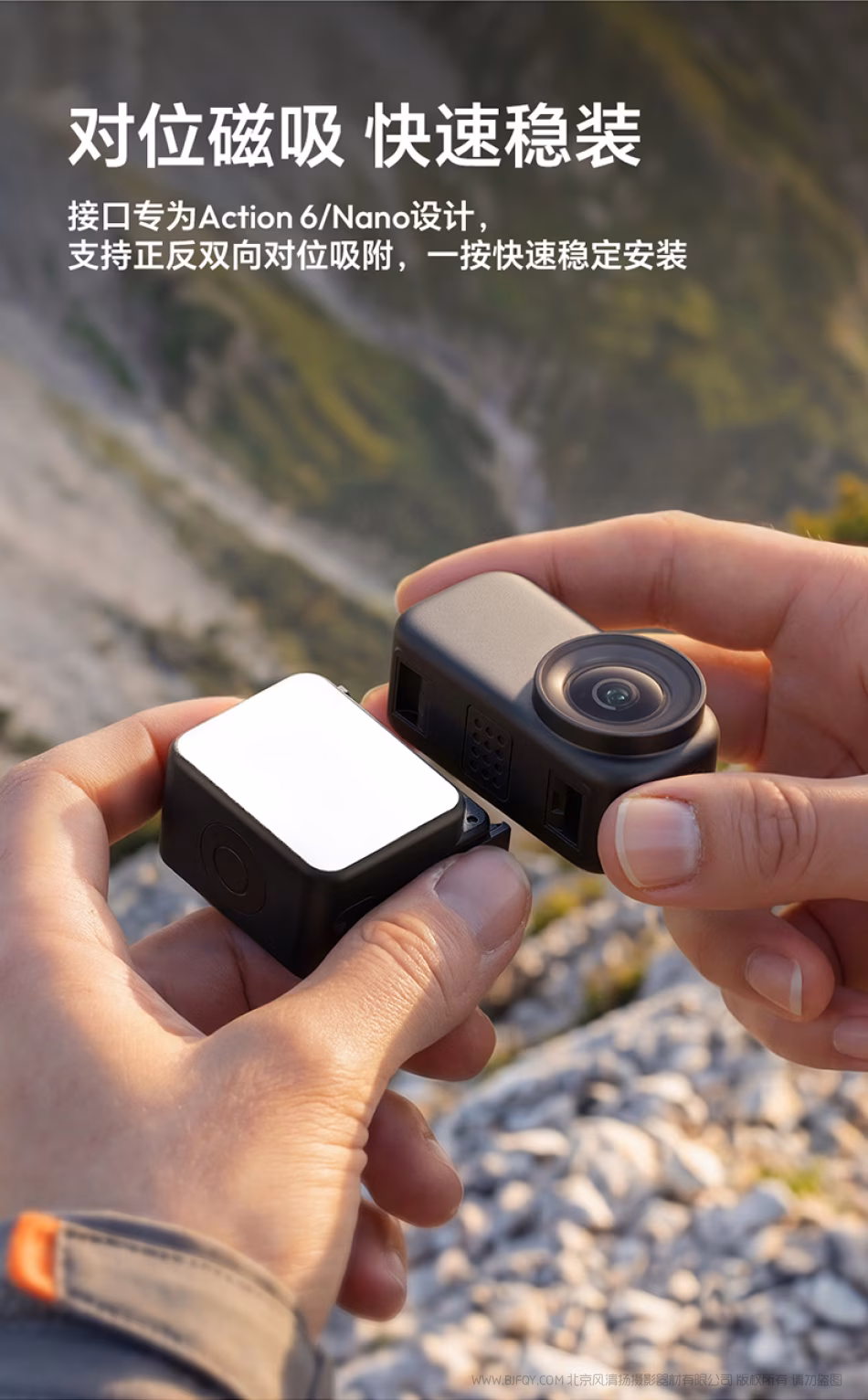 对位磁吸快速稳装 接口专为Action6/Nano设计 支持正反双向对位吸附,一按快速稳定安装