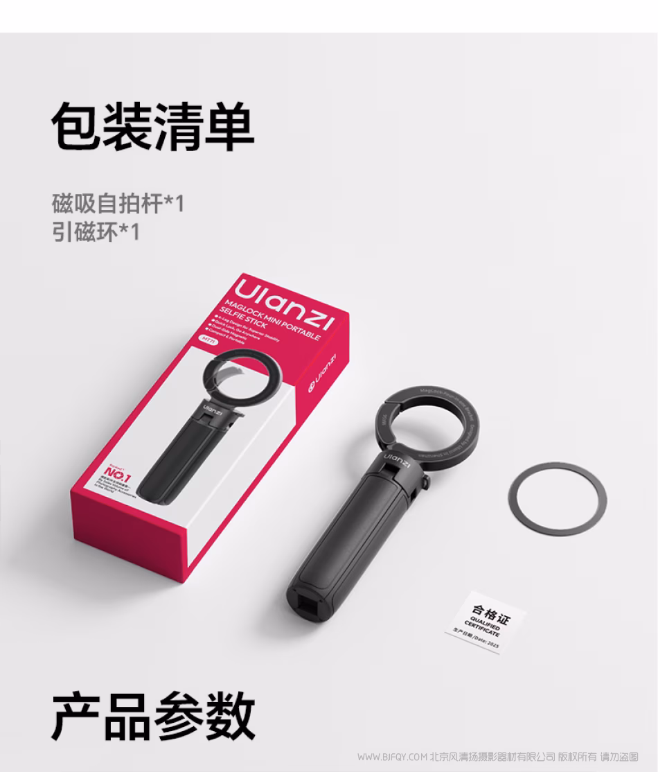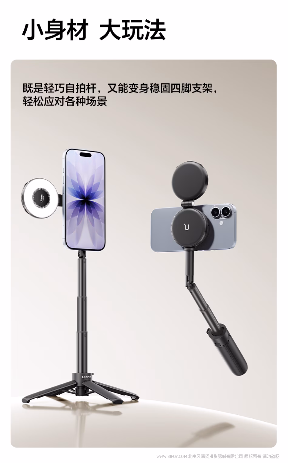 优篮子 Ulanzi MT71 MagLock手机迷你自拍杆 S005 一体伸缩 迷你磁吸 一手掌握