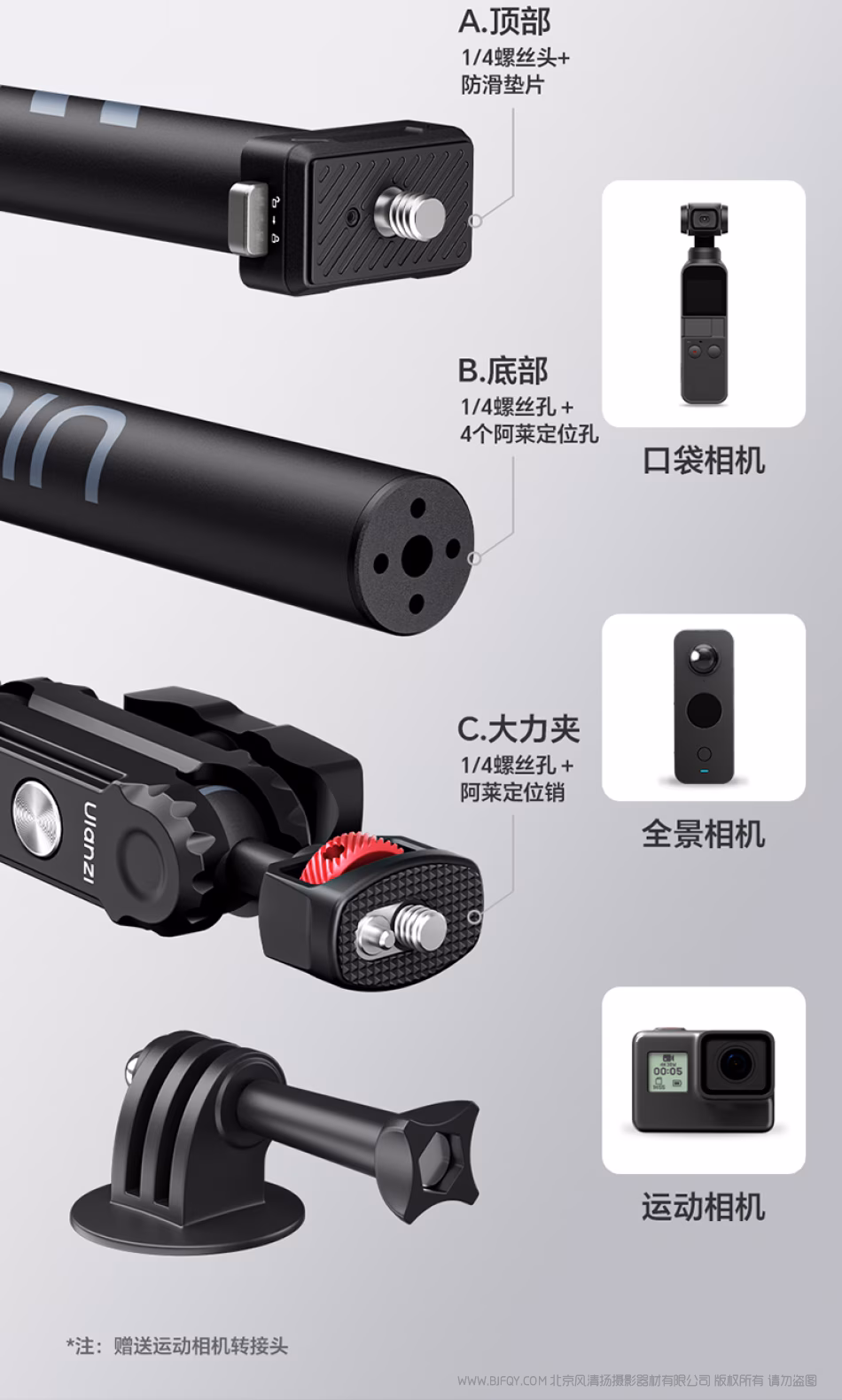 优篮子 Ulanzi VL03 摩托车隐形自拍杆支架 自由骑行 稳拍随行