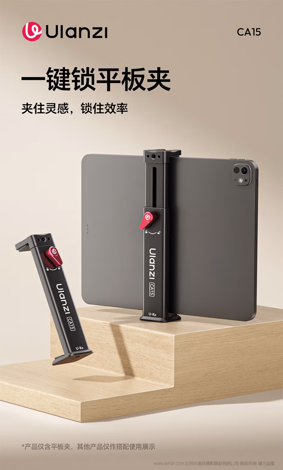 优篮子 Ulanzi CA15 一键锁平板夹 C072 夹住灵感,锁住效率