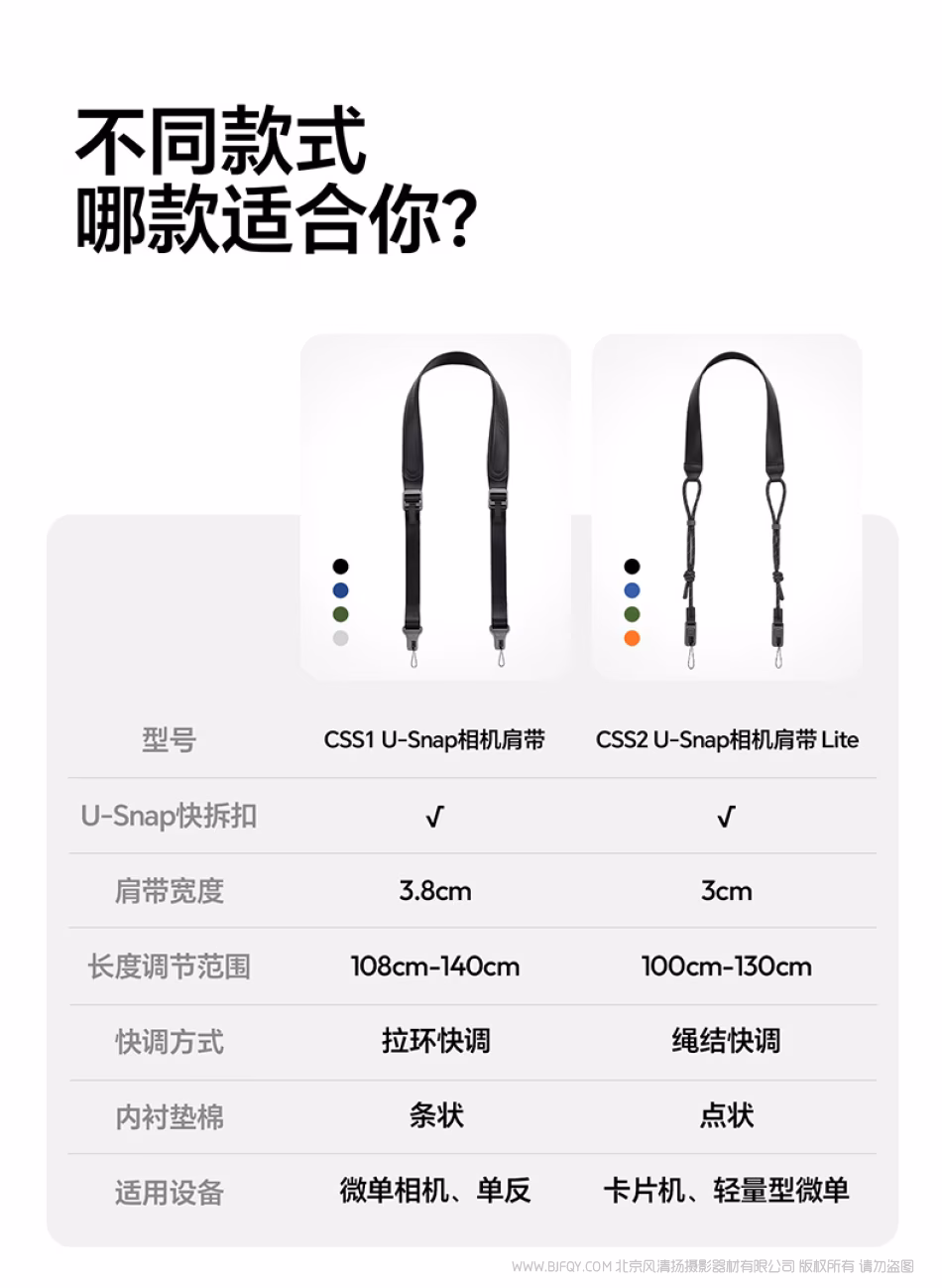 优篮子 Ulanzi CSS2 U-Snap相机肩带Lite -暗影黑B198 雾凇绿B199 星渊蓝B200 暮光橙B201