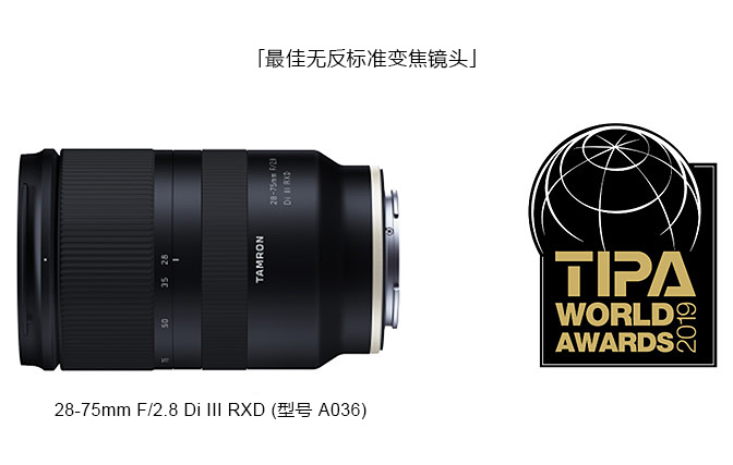 | 2019年 | 最佳无反标准变焦镜头 28-75mm F/2.8 Di III RXD (型号 A036) |