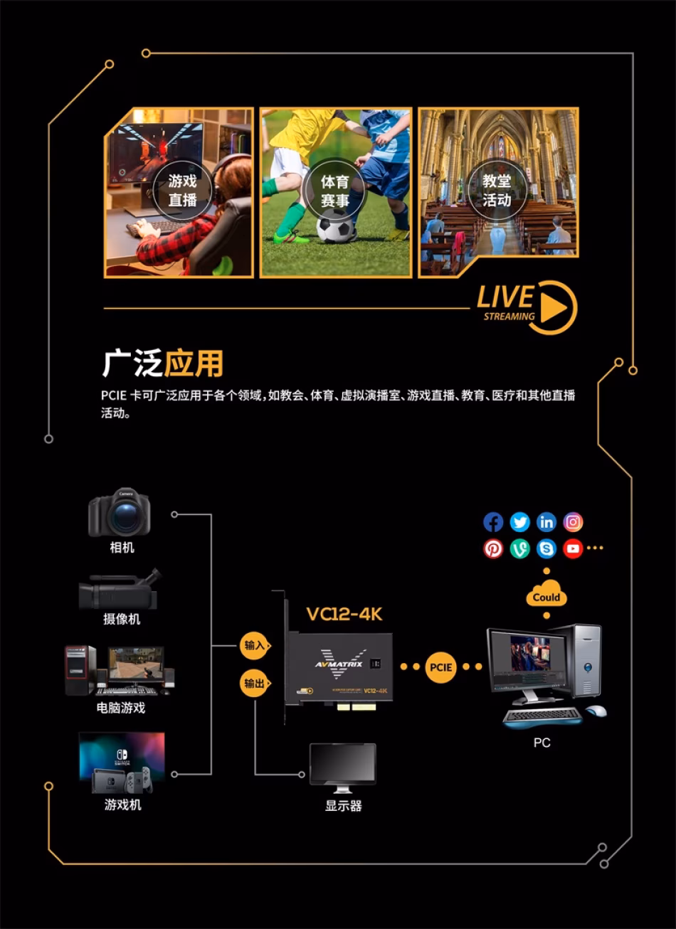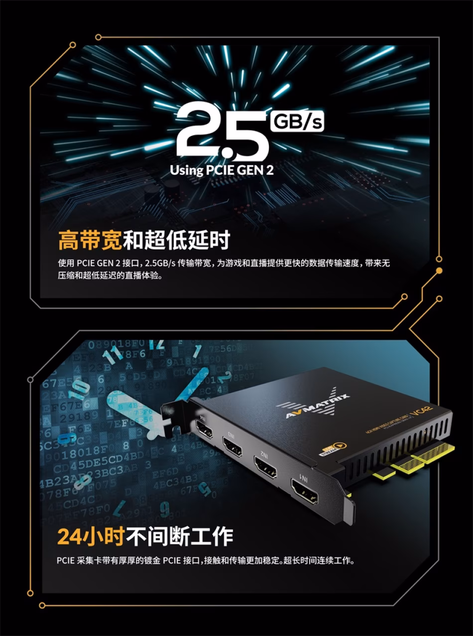 迈拓斯 AVMATRIX VC12-4K丨4K HDMI PCIE 采集卡 内置采集卡
