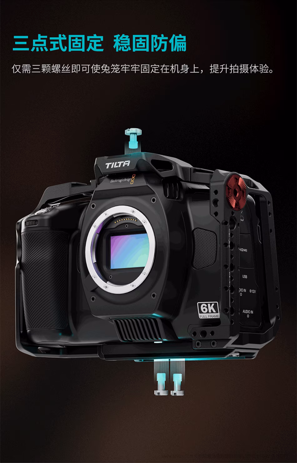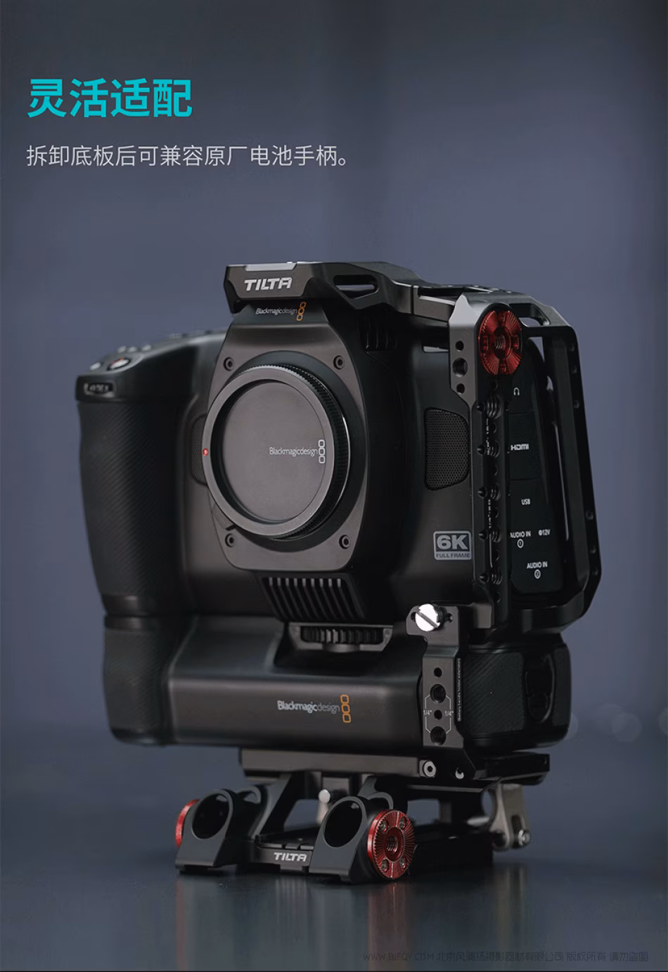 这款用于 BMCC 6K(全画幅)的相机笼为相机机身提供保护装甲,并允许用户固定不同的配件以改善相机的功能。