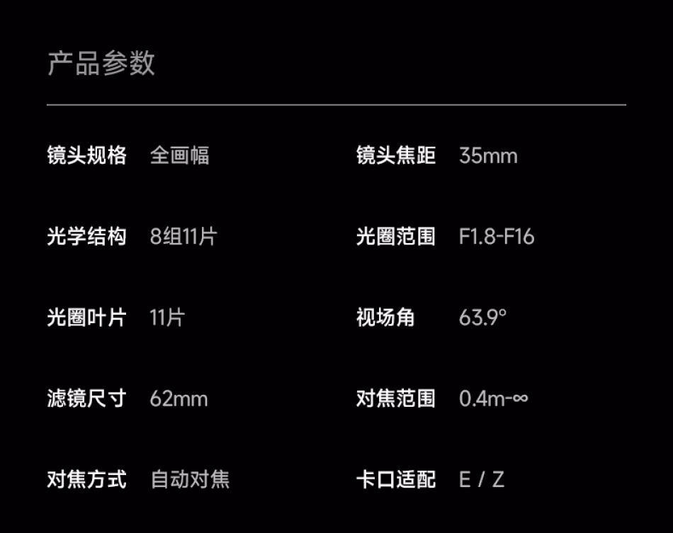BrightnStar 星曜 星耀 AF 35mm F1.8 全画幅 自动对焦镜头 E卡口 Z卡口
