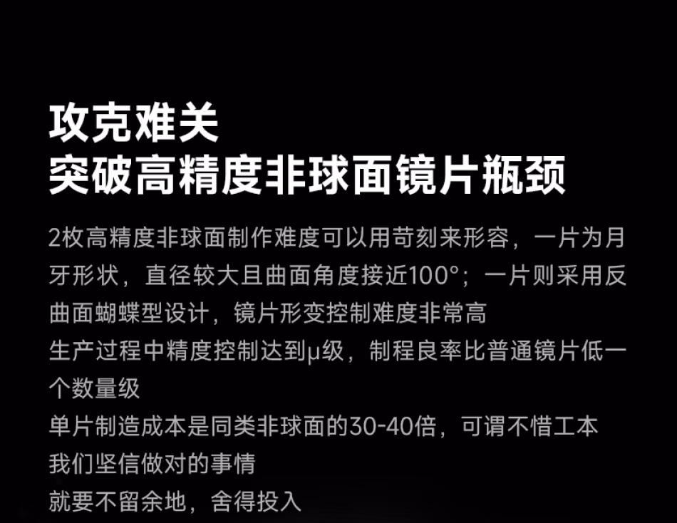 个数量级单片制造成本是同类非球面的30-40倍,可谓不惜工本我们坚信做对的事情就要不留余地,舍得投入