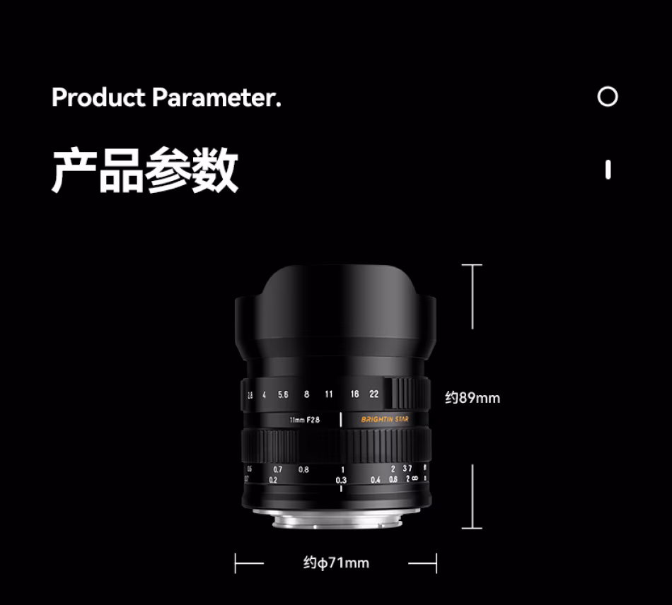 BrightnStar 星曜 星耀 MF 11mm F2.8 ASPH 全画幅 鱼眼 手动对焦镜头 BS-MF1128 180°超广 8组11片