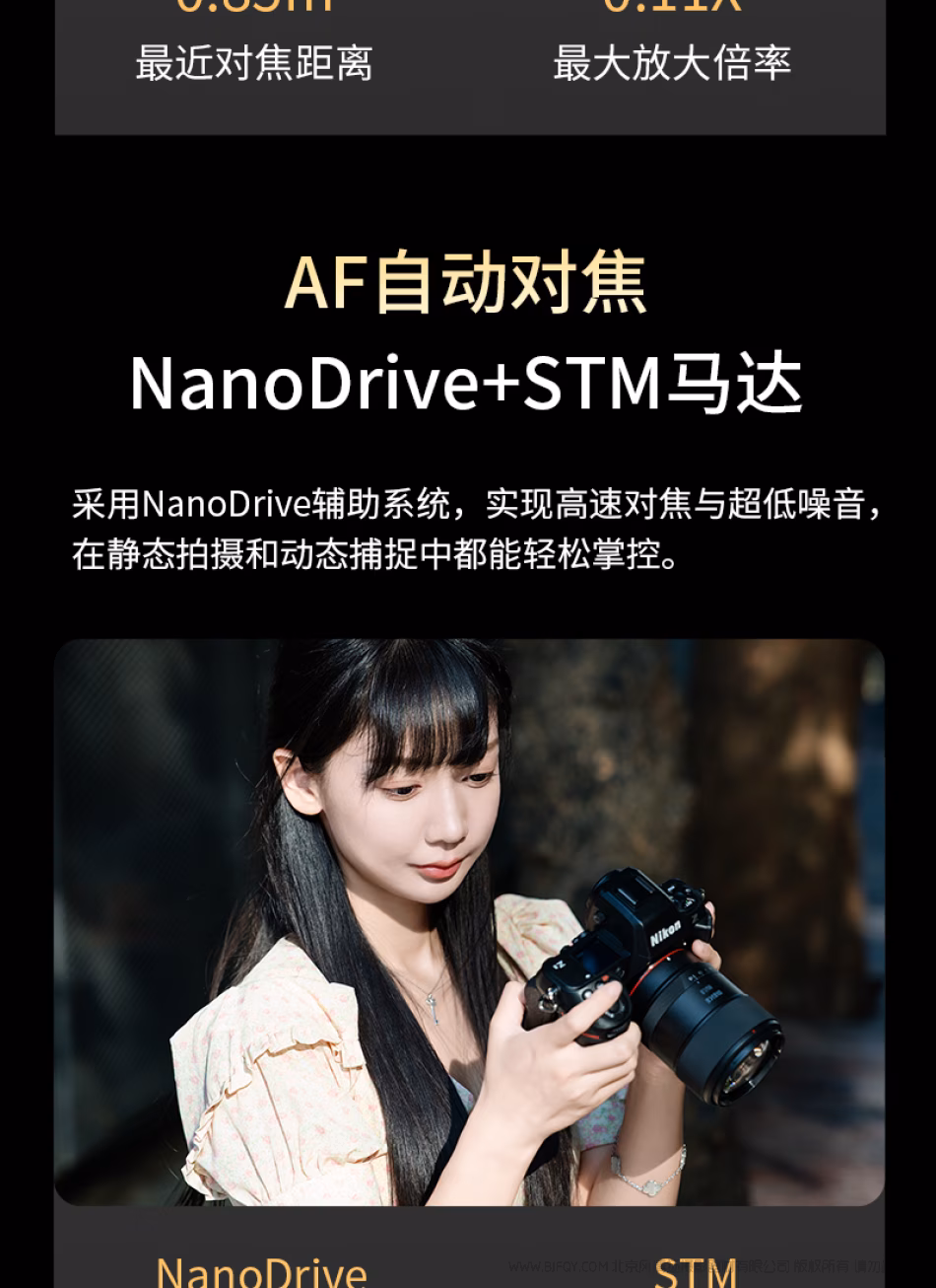 | 光学结构 | 8组11片 (包括2枚ED镜片,3枚高折射镜片,一枚非球面镜片) |