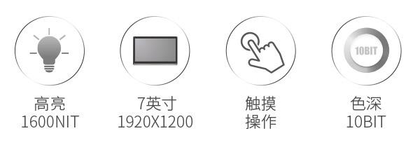7寸全高清IPS屏,更广阔的视野,清晰呈现更多细节画面,1.07B色彩提供更加丰富的颜色。160°宽视角,支持多成员全方位监看画面 ,便于团队协作出片。