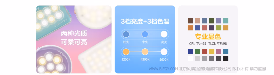 3档亮度和3档色温可提供合适的光效,带上cookie饼干,点亮你眼中的精彩时刻
