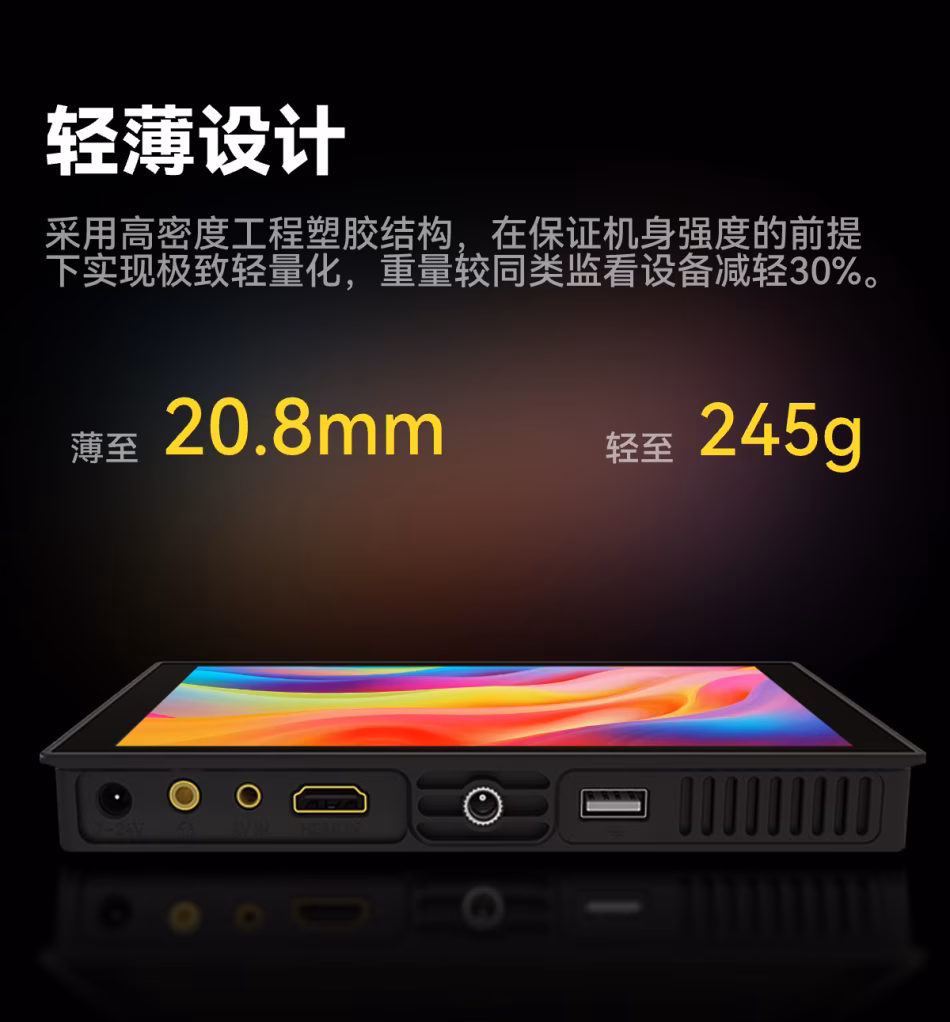 | 软件功能 | 焦点辅助、斑马线、伪色彩、亮度波形图、RGB示波 亮度直方图、音频柱、矩形裁切、HDR(HLG)、检查 现场、导视框、十字光标、网格、变形、3D LUT、对比度 亮度、清晰度、饱和度、色温、色调、黑电平、显示翻转 垂直翻转、水平翻转、手势放大、色温手动设置 |