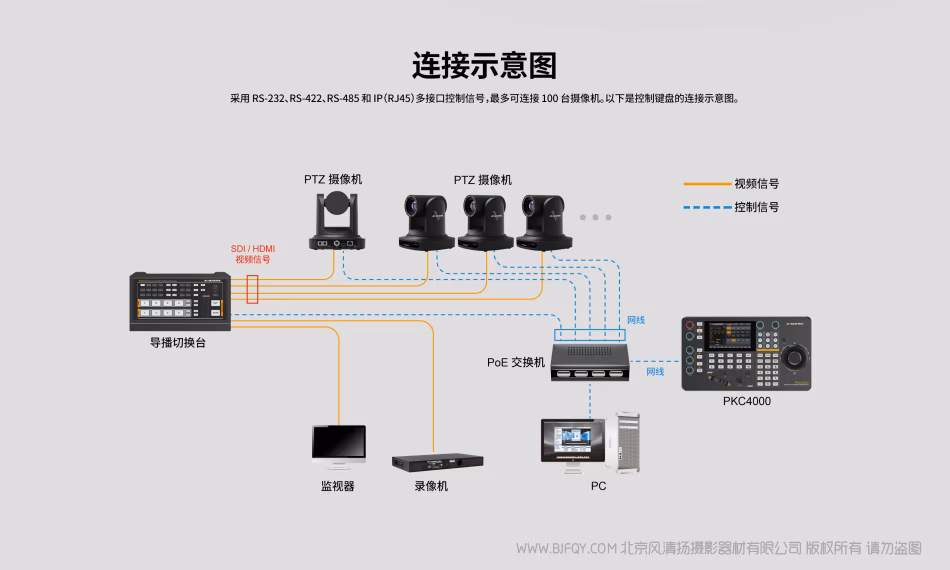 *通过 IP、RS-422、RS-485 和 RS-232 进行控制