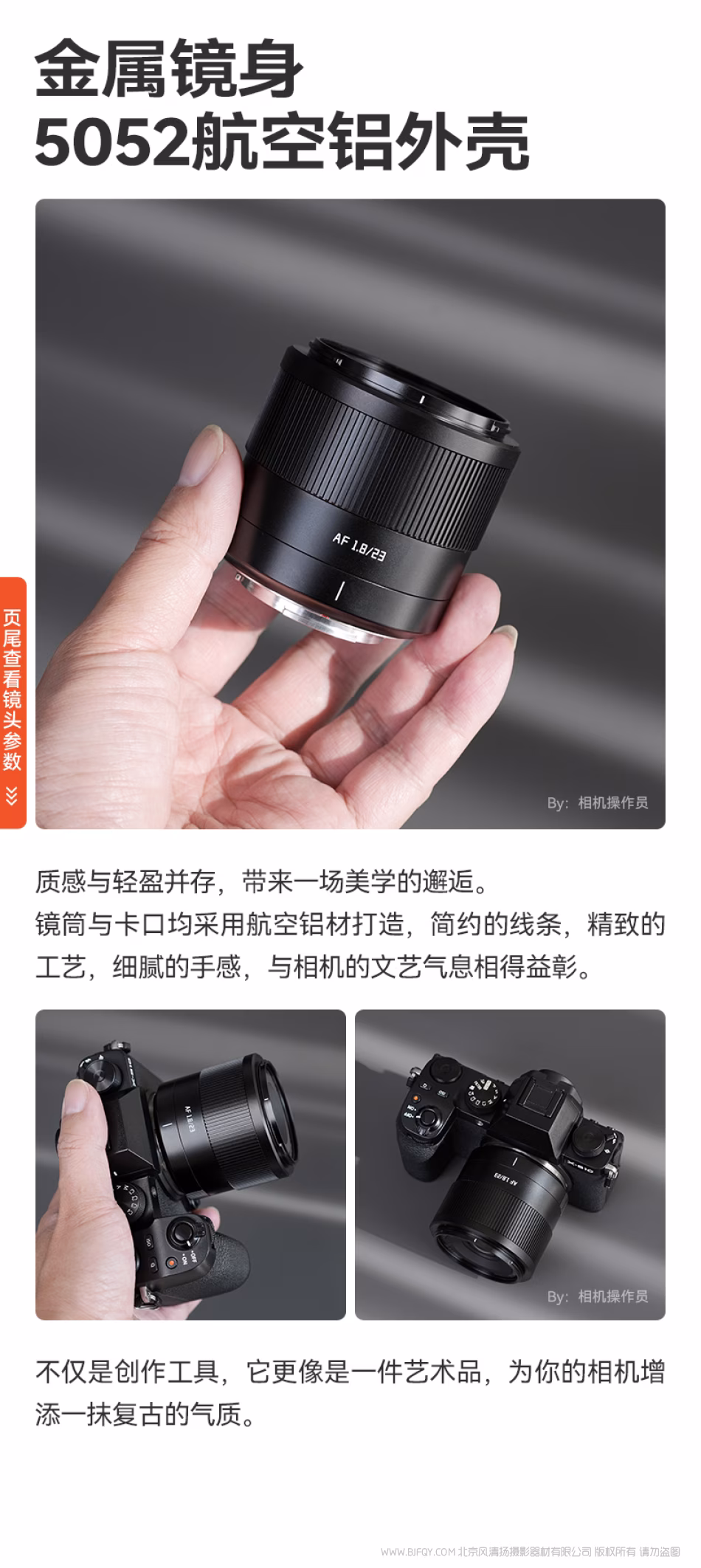 金属镜身,5052航空铝外壳 质感与轻盈并存,带来一场美学的邂逅。
