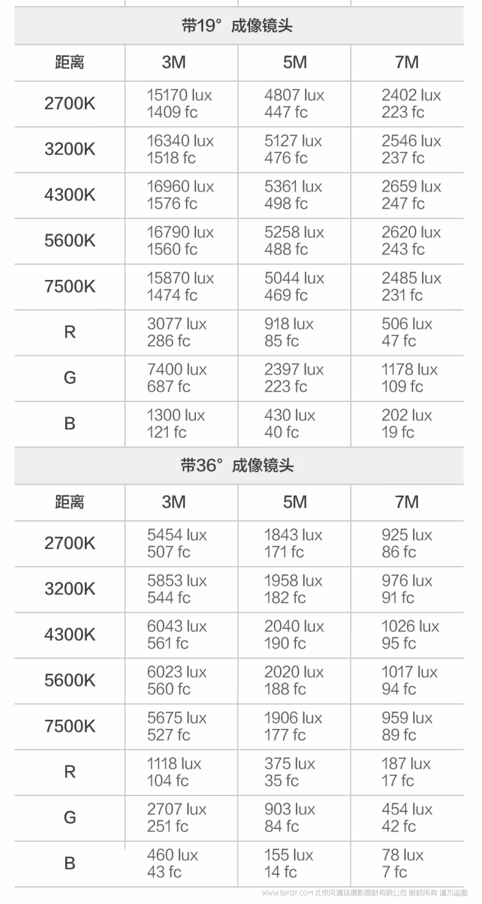 | 3200K | 74660 lux / 6936 fc | 7500 lux / 697 fc | 2712 lux / 252 fc |