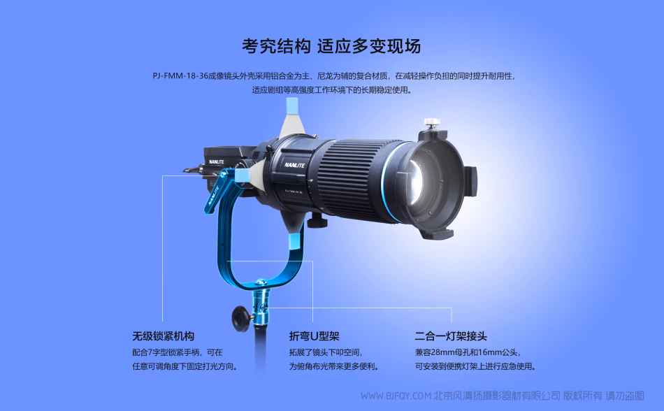 为此,Nanlite南光推出专为FM卡口灯具设计的变焦成像镜头(PJ-FMM-18-36),