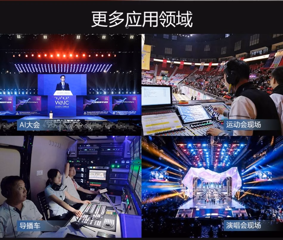 产品广泛应用于电视台、演播室、转播车直播现场等等,凭借优异的产品可靠性得到中国中央电视台包括CCTV、湖南电视台、上海电视台在内
