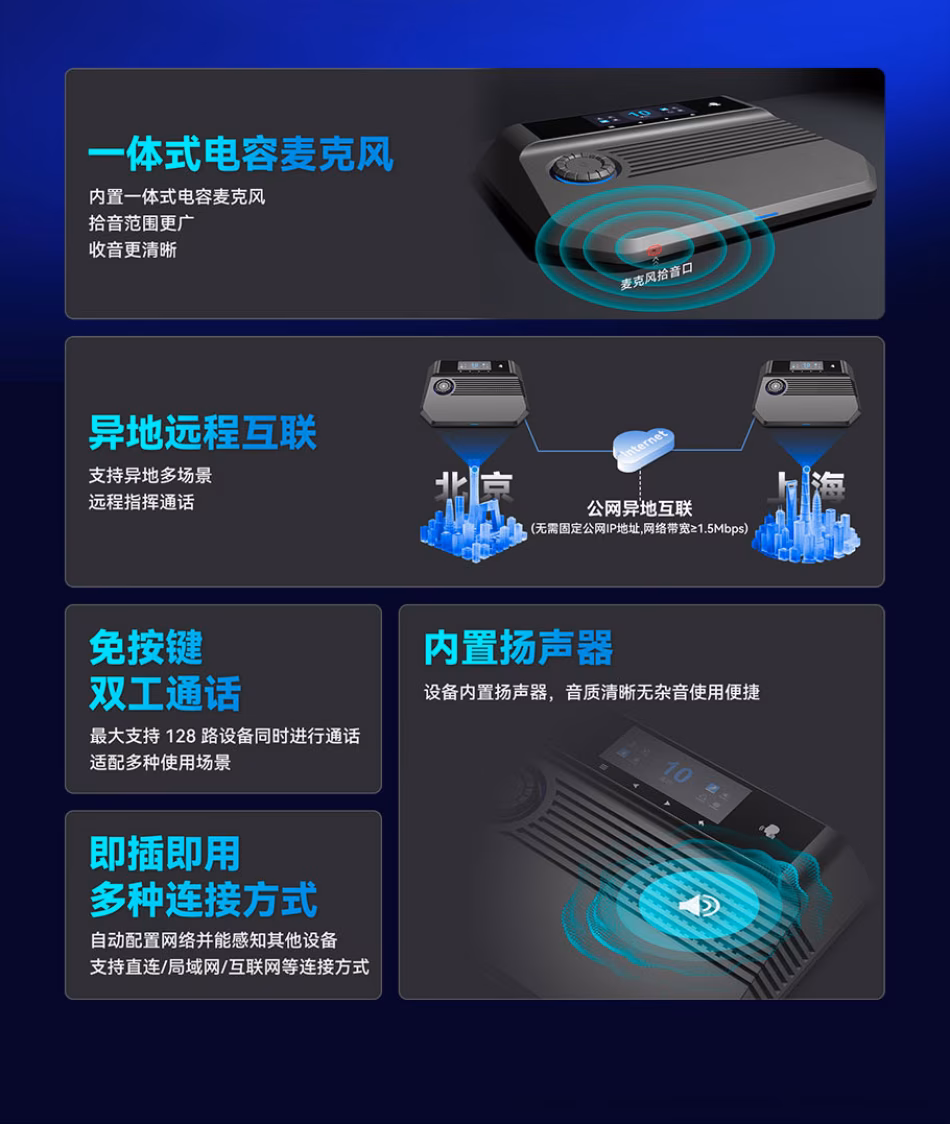 ·支持TCP/P网络联网语音,自主接人网络后可自动搜索识别进行连接