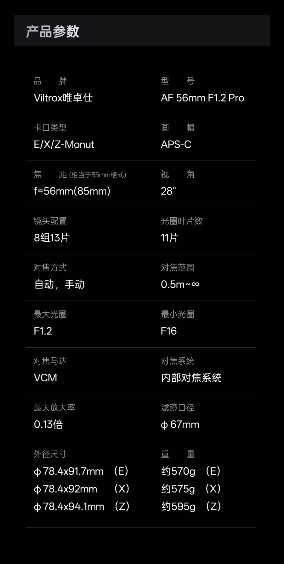| 品牌 | Viltrox 唯卓仕 | Viltrox 唯卓仕 | Viltrox 唯卓仕 |