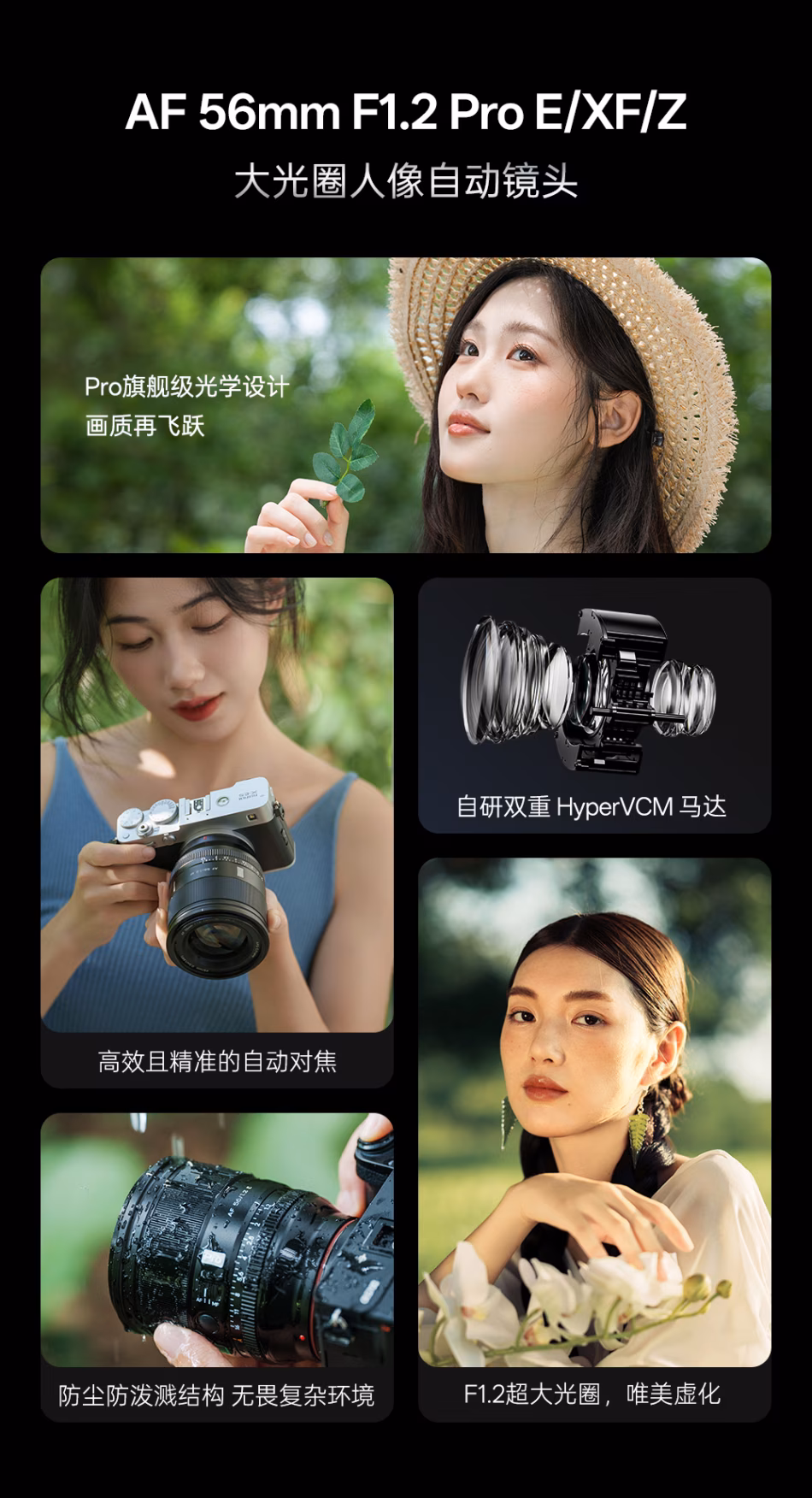 AF 56mm F1.2 PRO 在F1.2 光圈全开下画质依旧锐不可当,从中心到边缘始终锐利如一。领先采用UA超精度非球面镜片,优异的像差控制,全开光圈本应无需妥协