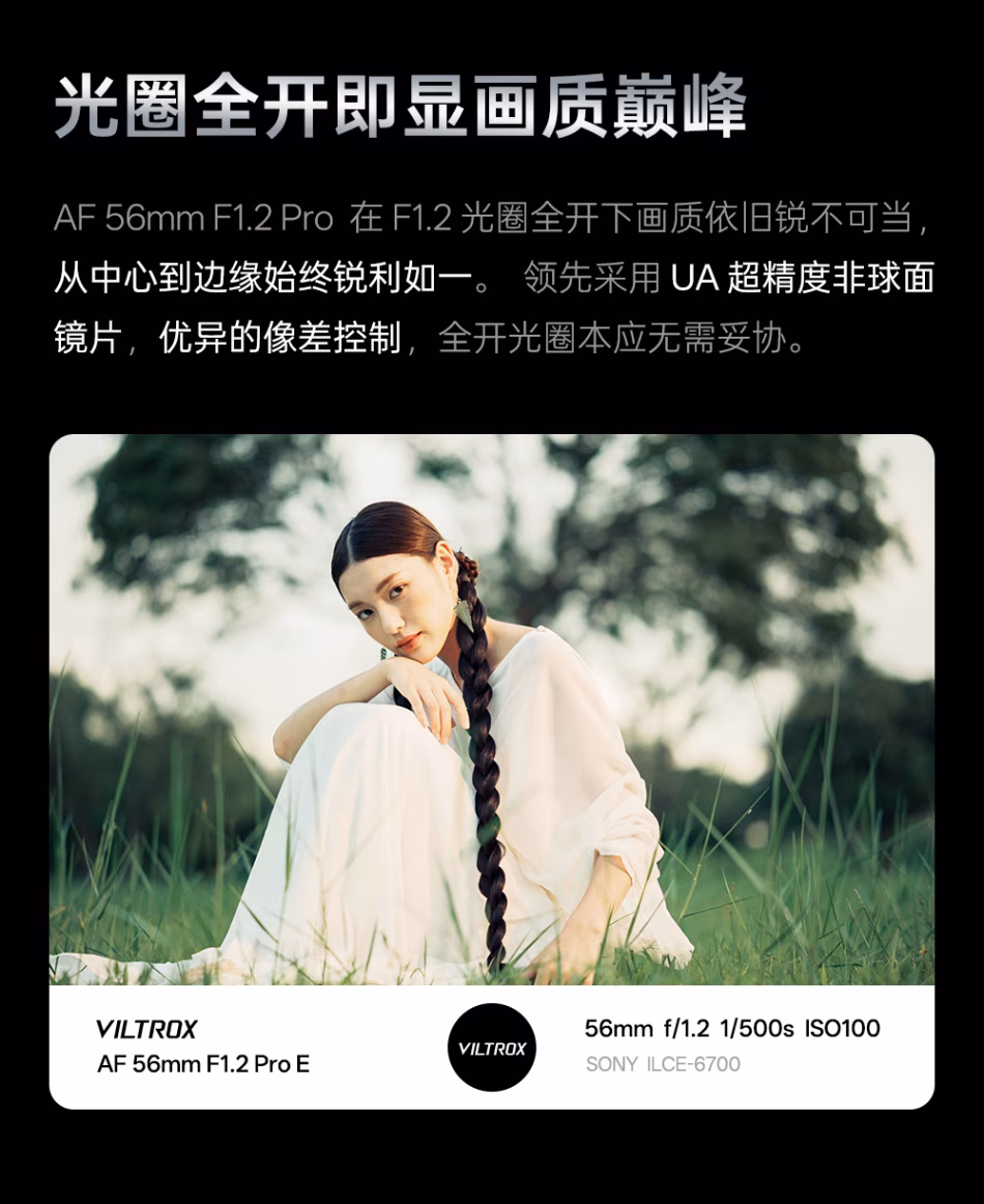 唯卓仕 Viltrox AF 56mm F1.2 Pro E/Z/X APSC画幅 大光圈定焦镜头 VCM马达 UA超级非球面镜片 VL-AF5612P