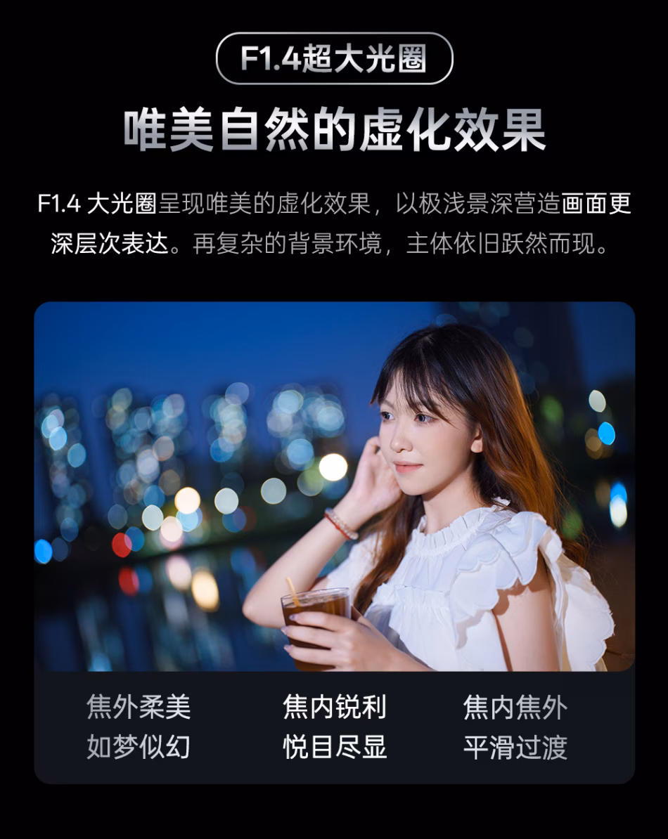 | 较大光圈 | F1.4 | 较小光圈 | F16 |