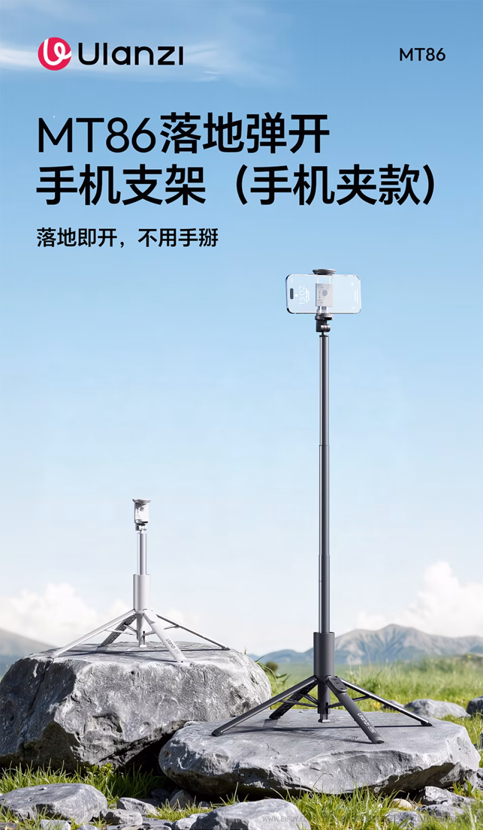 优篮子 Ulanzi MT86一键打开自拍杆手机夹款-S023黑色 S094白色 落地弹开手机支架