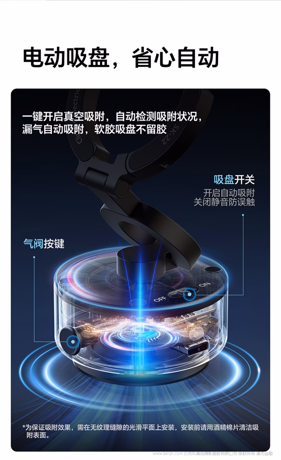 电动吸盘,省心自动 一键开启真空吸附,自动检测吸附状况 漏气自动吸附,软胶吸盘不留胶