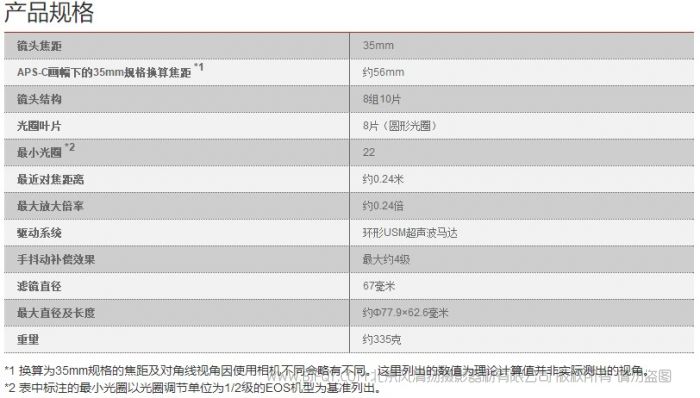 | APS-C画幅下的35mm 规格换算焦距 | 约56mm |