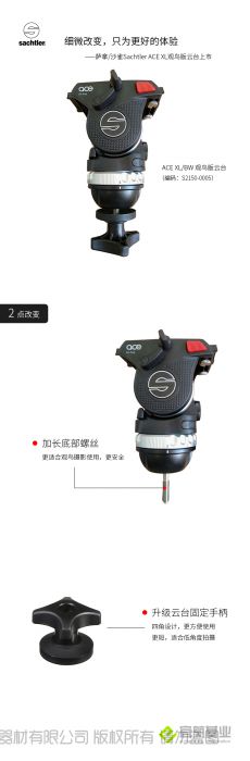 观鸟拍摄设计,全新四角把手,加长底部螺丝,更安全,更方便。套装包括:ACE XL云台、30厘米长板、托架、75mm双卡 槽球碗